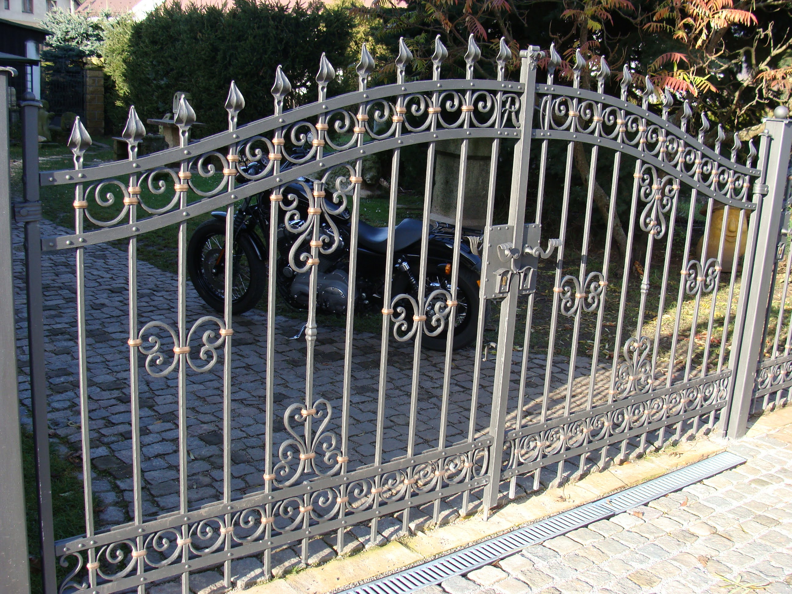 Vyrábím kované brány a kované branky přesně podle přání zákazníka, a to v jednokřídlém i dvoukřídlém provedení. Každý výrobek je originální kus, který vzniká ruční prací s maximálním důrazem na detail, pevnost a dlouhou životnost. Kované brány i branky se hodí pro rodinné domy, chalupy, firemní objekty i historické budovy, kde vytvářejí elegantní a zároveň bezpečný vstup.